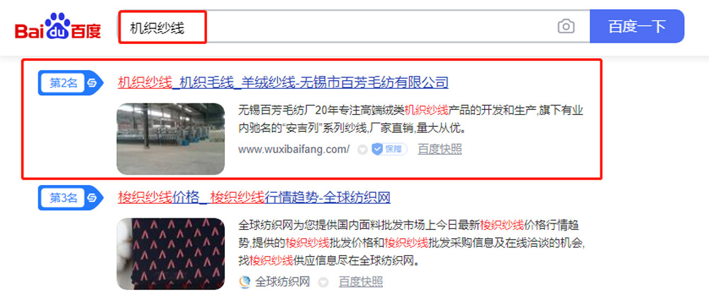無錫市百芳毛紡有限公司紗線產(chǎn)品營(yíng)銷型網(wǎng)站建站及優(yōu)化案例展示